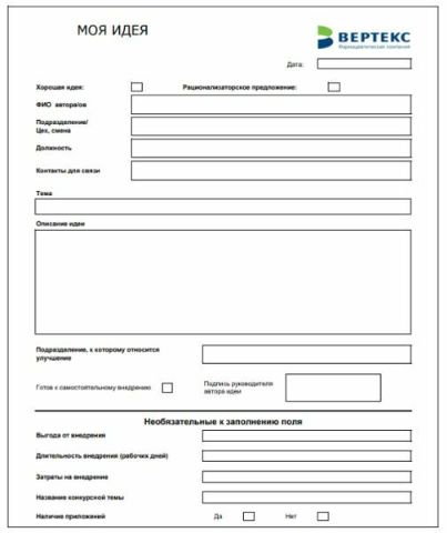 Идеи могут быть направлены, например, на улучшение текущих бизнес-процессов, экономию ресурсов компании, повышение комфорта рабочего пространства, обеспечение безопасности и т.д.